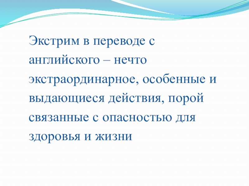 Слайд 2Экстрим в переводе с английского – нечто экстраординарное, особенные и выдающиеся