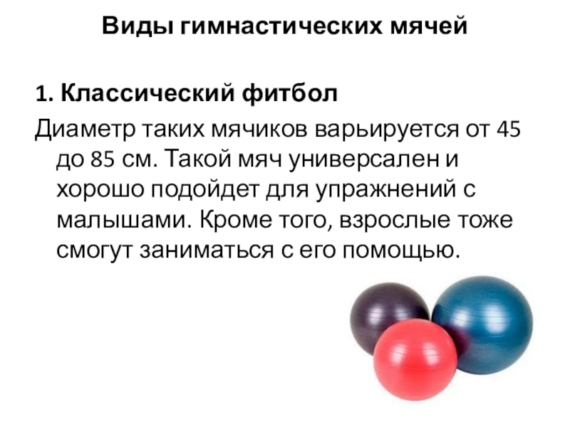Слайд 2Фитбол (fitball, "fit" – оздоровление, "ball" – мяч) – щвейцарский гимнастический чудо-мяч, простой