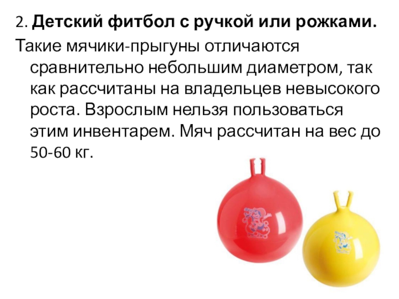 Слайд 62. Детский фитбол с ручкой или рожками.