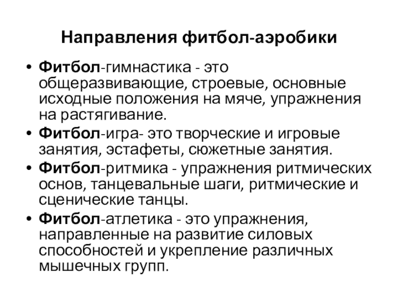 Фитбол-гимнастика - это общеразвивающие, строевые, основные исходные положения на мяче,