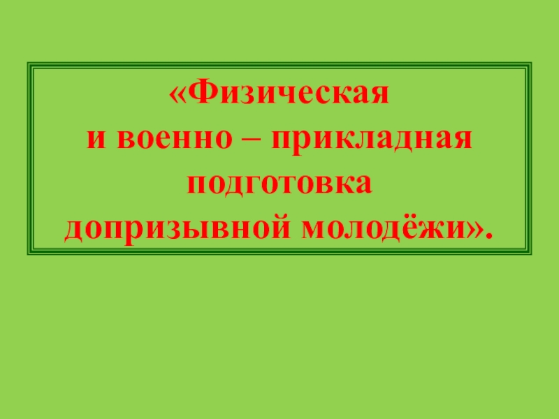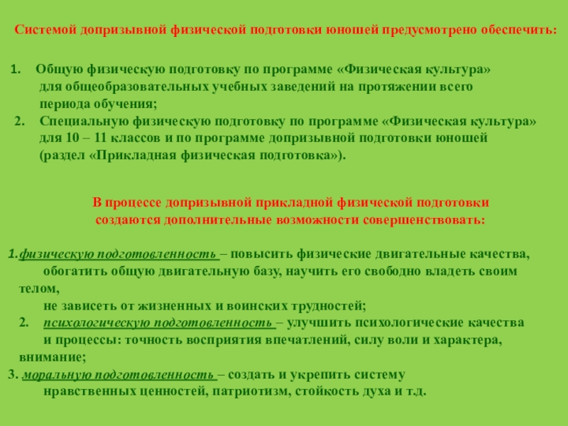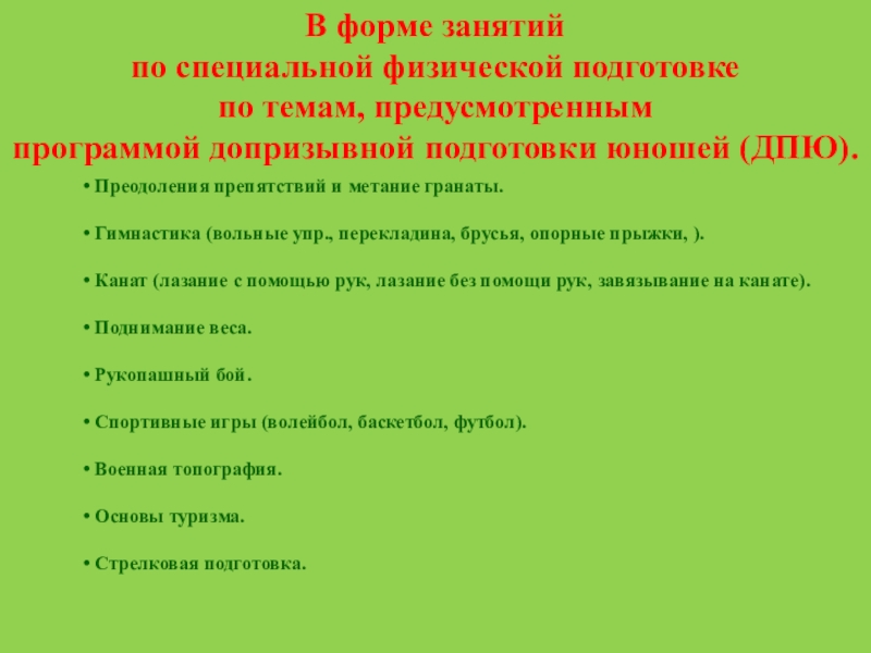 допризывной подготовки юношей (ДПЮ) раздел «Прикладная физическая подготовка».