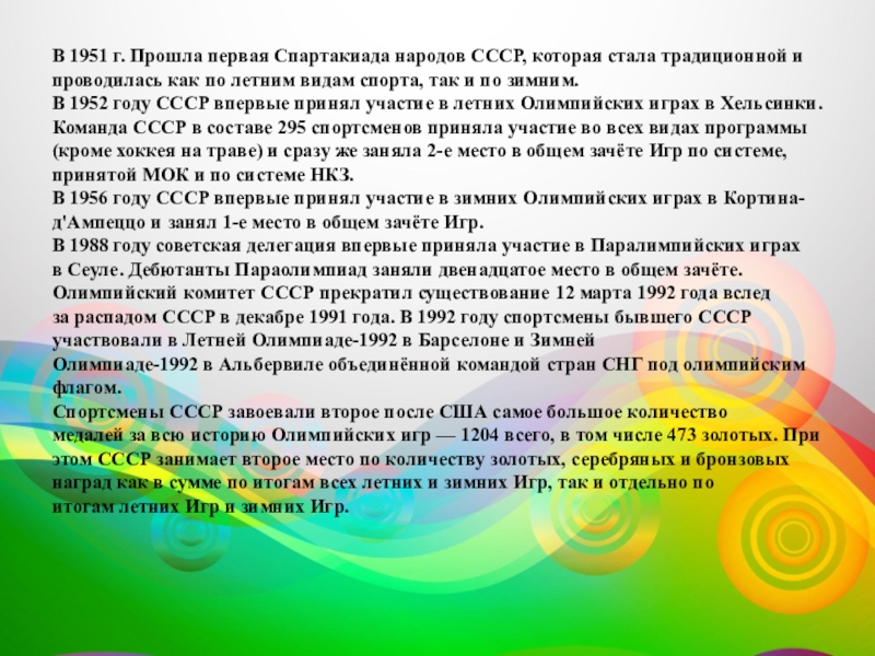 Слайд 13В 1951 г. Прошла первая Спартакиада народов СССР, которая стала традиционной