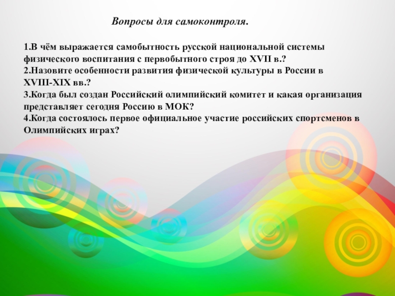 1.В чём выражается самобытность русской национальной системы физического воспитания с первобытного строя до XVII в.?
