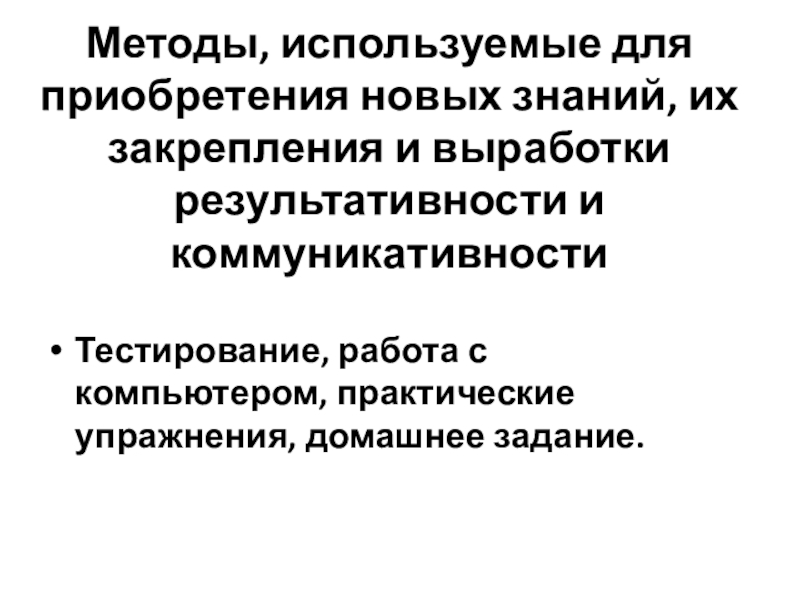 Тестирование, работа с компьютером, практические упражнения, домашнее задание.