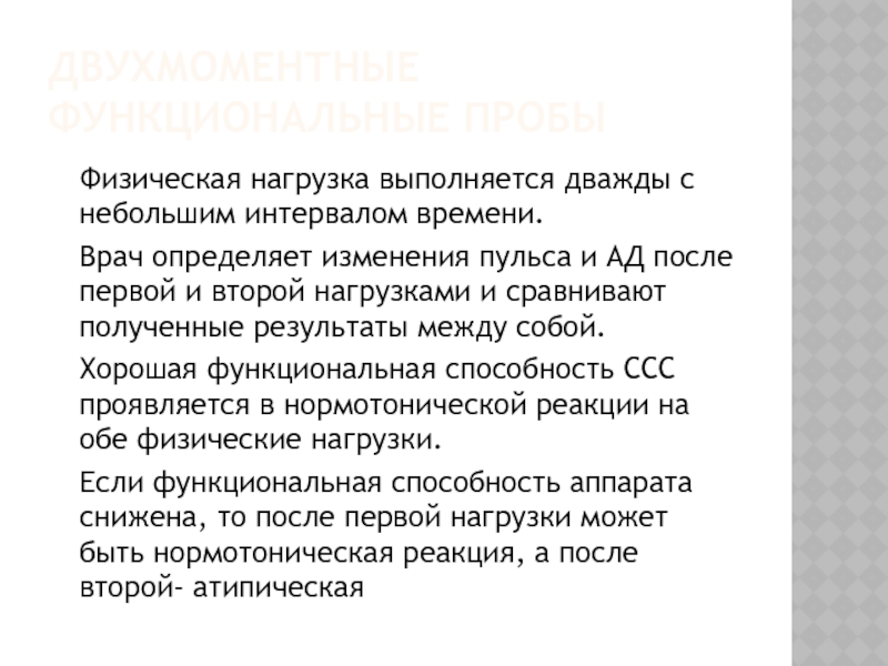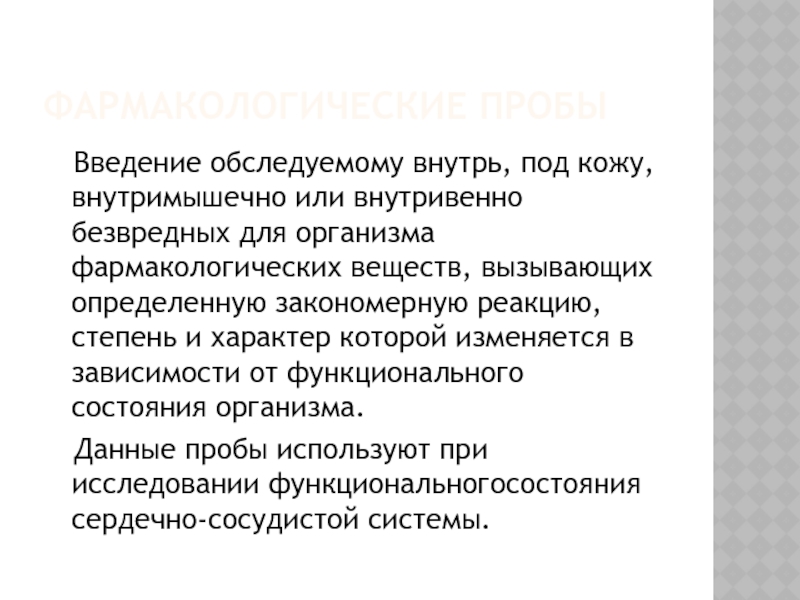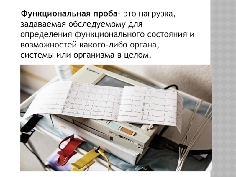 Слайд 2 Функциональная проба- это нагрузка, задаваемая обследуемому для определения функционального