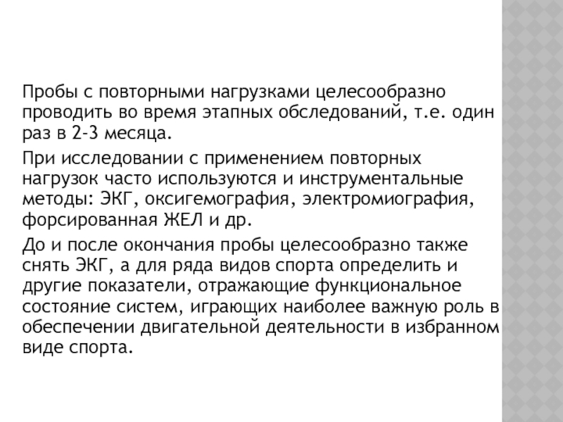Слайд 65 Пробы с повторными нагрузками целесообразно проводить во время этапных