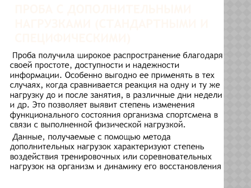 Слайд 54Проба с дополнительными нагрузками (стандартными и специфическими)