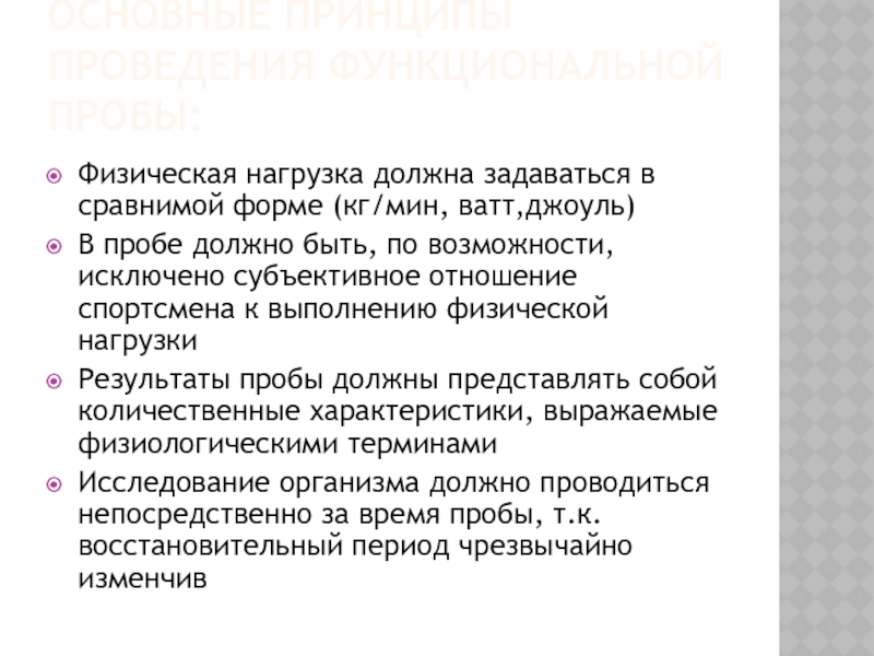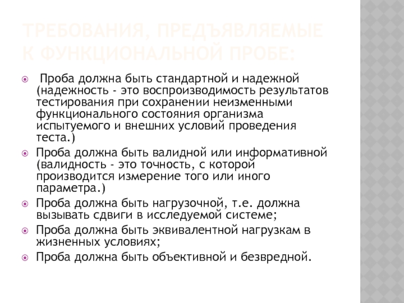Слайд 7Требования, предъявляемые к функциональной пробе: