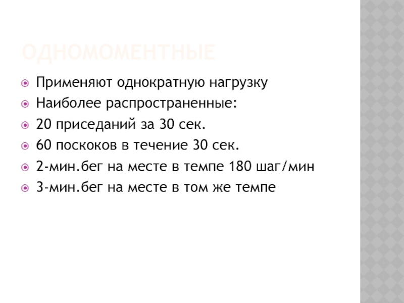 Нагрузки должны выполняться в максимально возможном для каждого обследуемого темпе, так как только в этом случае в полной мере проявляются функциональные возможности организма.
