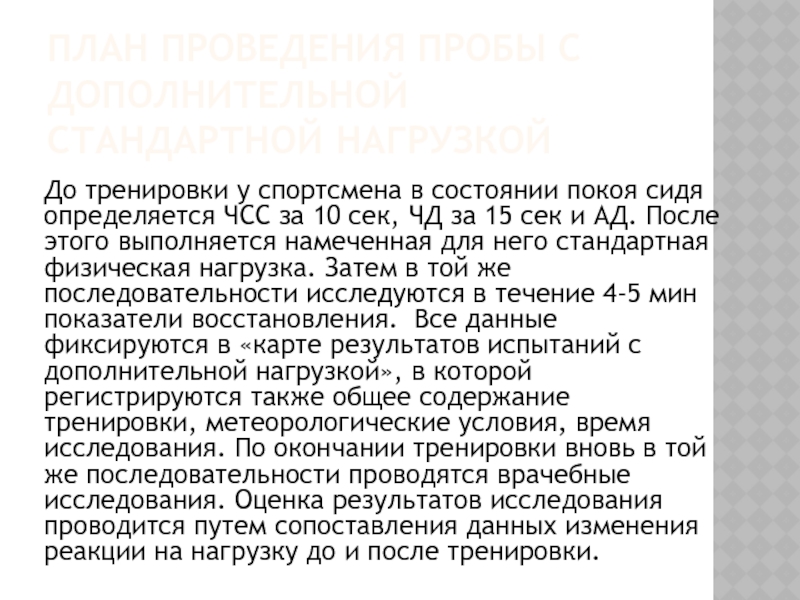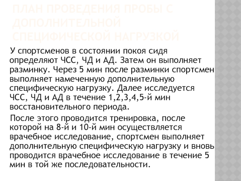 Слайд 59План проведения пробы с дополнительной специфической нагрузкой