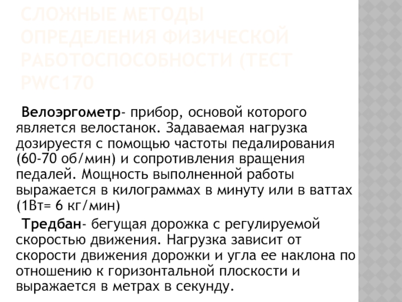 Слайд 47Сложные методы определения физической работоспособности (тест PWC170