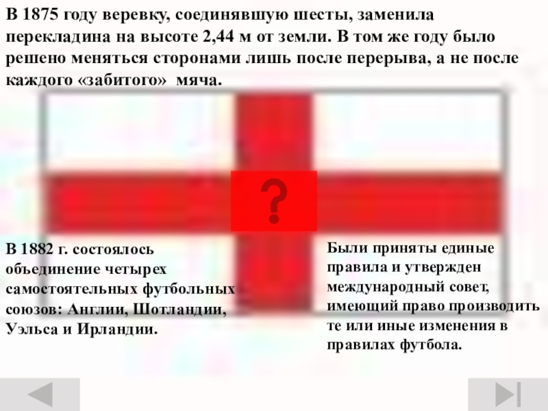 Были приняты единые правила и утвержден международный совет, имеющий право производить те или иные изменения в правилах футбола.