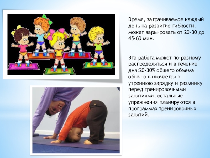 Слайд 5Время, затрачиваемое каждый день на развитие гибкости, может варьировать от 20-30