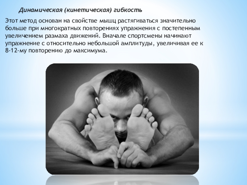 ● динамическая (кинетическая) гибкость — возможность выполнения динамических движений в суставе по полной амплитуде.