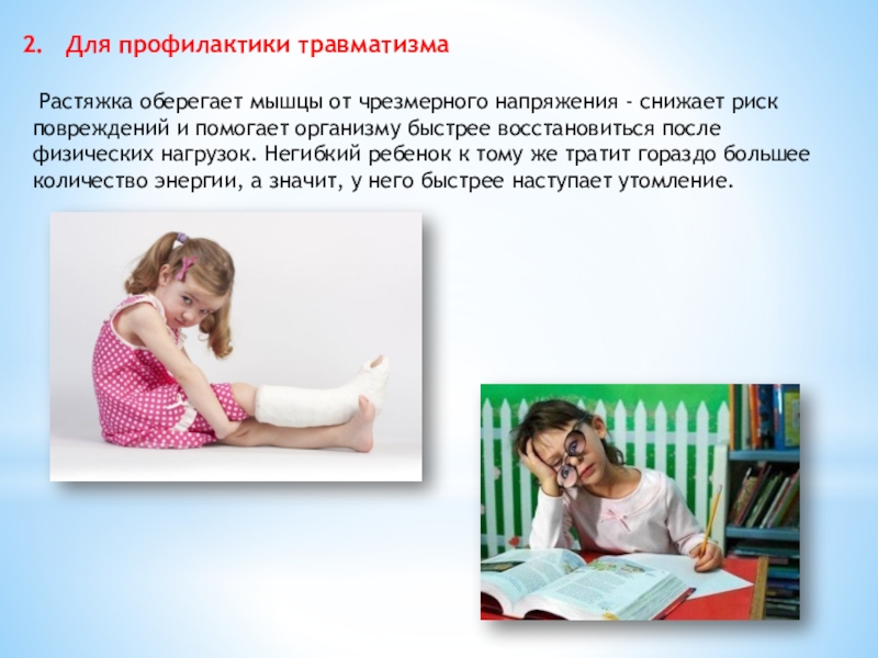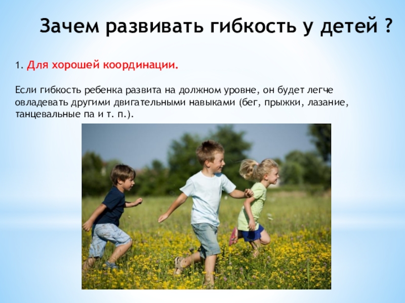 риск повреждений и помогает организму быстрее восстановиться после физических нагрузок. Негибкий ребенок к тому же тратит гораздо большее количество энергии, а значит, у него быстрее наступает утомление.