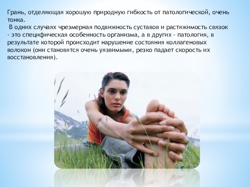 Слайд 15Грань, отделяющая хорошую природную гибкость от патологической, очень тонка.