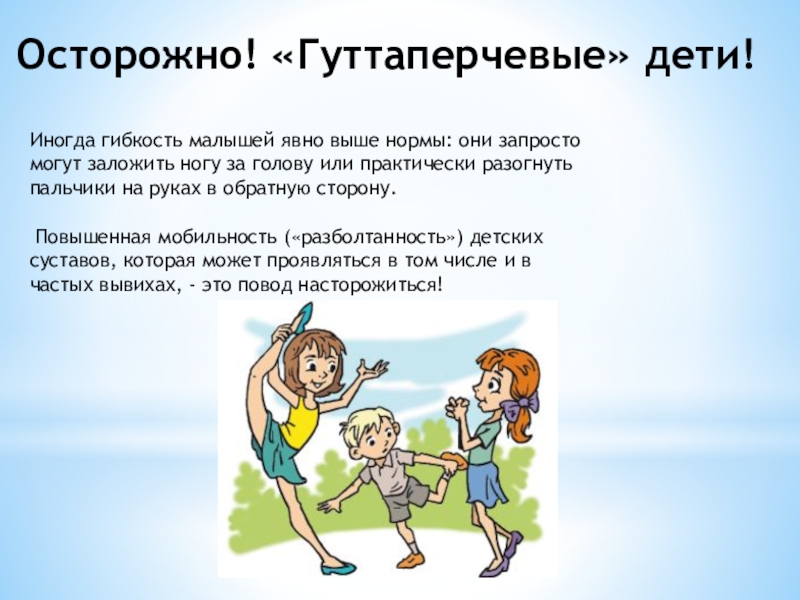Слайд 14Осторожно! «Гуттаперчевые» дети!