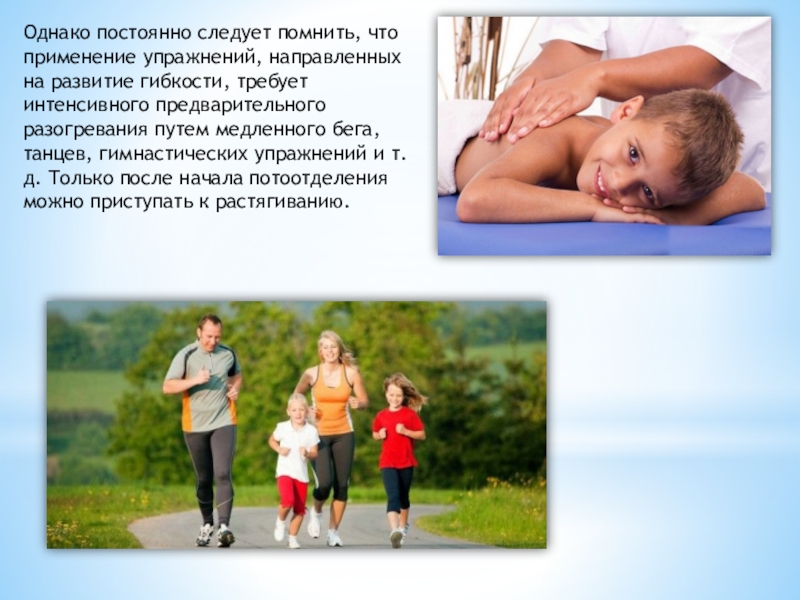 Слайд 6Однако постоянно следует помнить, что применение упражнений, направленных на развитие гибкости,