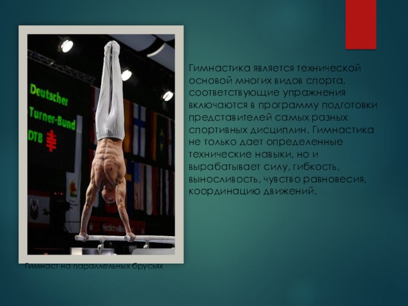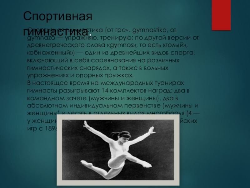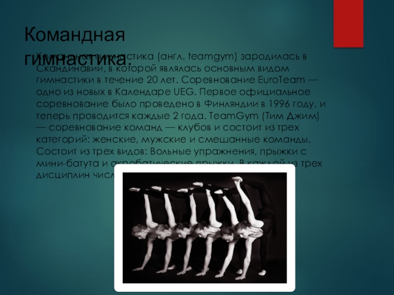 К спортивным видам гимнастики относятся: спортивная, художественная, акробатическая, командная.