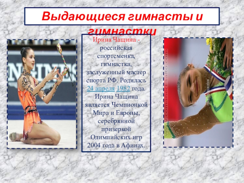 Ирина Чащина - российская спортсменка, гимнастка, заслуженный мастер