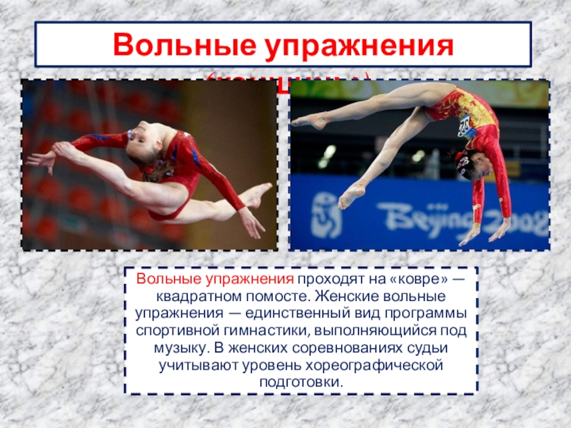 Вольные упражнения входят в программу как женских, так и