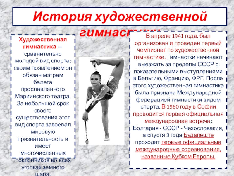 Художественная гимнастика — сравнительно молодой вид спорта; своим появлением