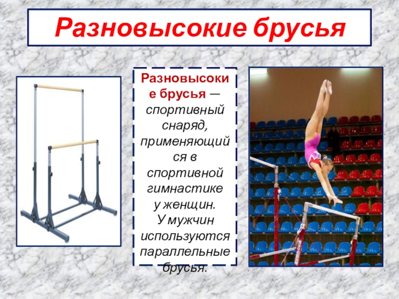 Разновысокие брусья — спортивный снаряд, применяющийся в спортивной гимнастике