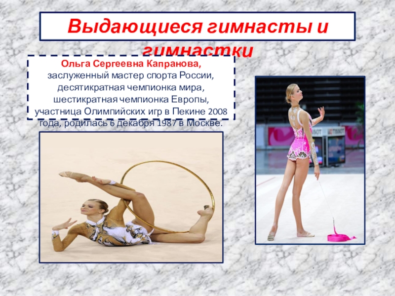 Слайд 33Выдающиеся гимнасты и гимнастки