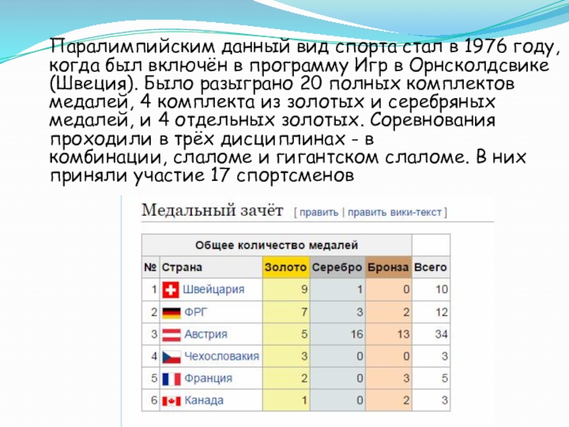 Слайд 4 Паралимпийским данный вид спорта стал в 1976 году, когда