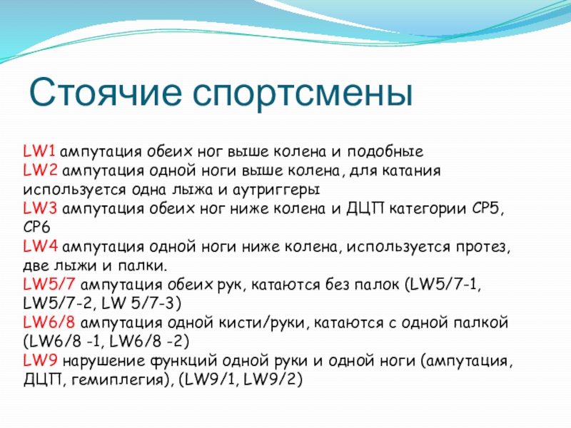 Слайд 16Стоячие спортсмены