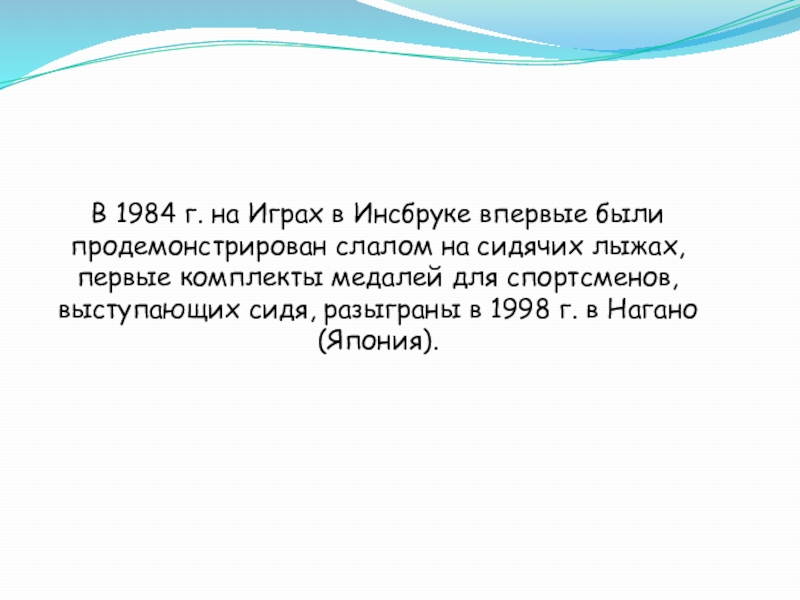 Слайд 7В 1984 г. на Играх в Инсбруке впервые были продемонстрирован слалом
