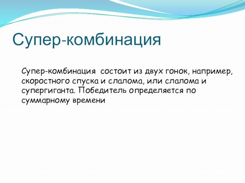 Супер-комбинация состоит из двух гонок, например, скоростного спуска и слалома, или