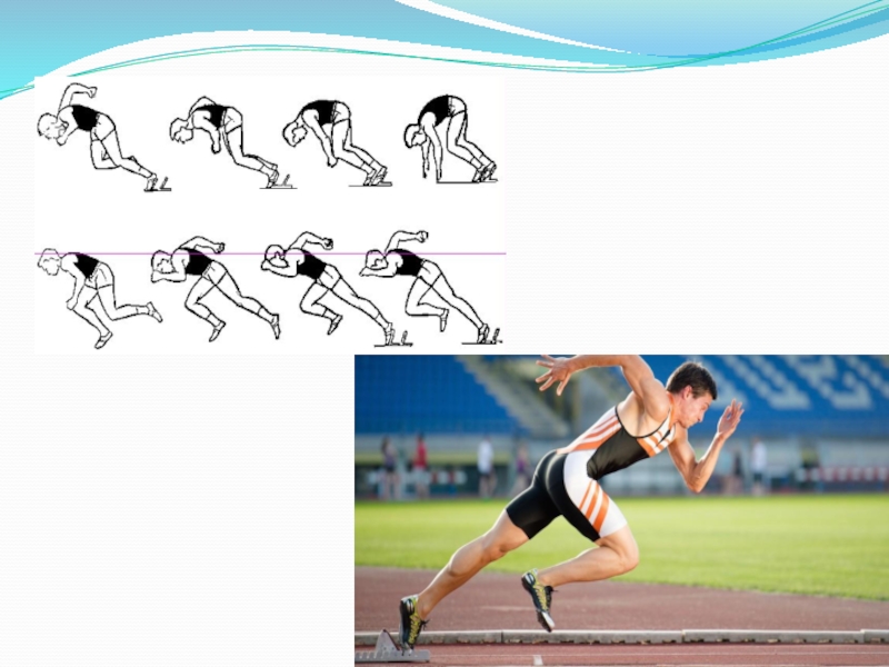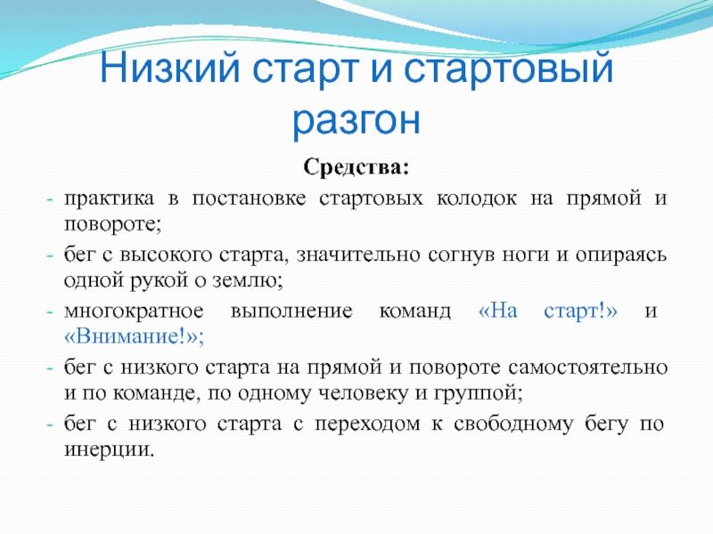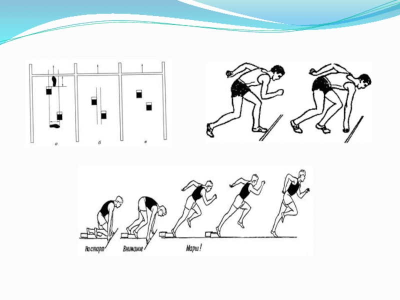 бег с низкого старта с переходом к свободному бегу по инерции.