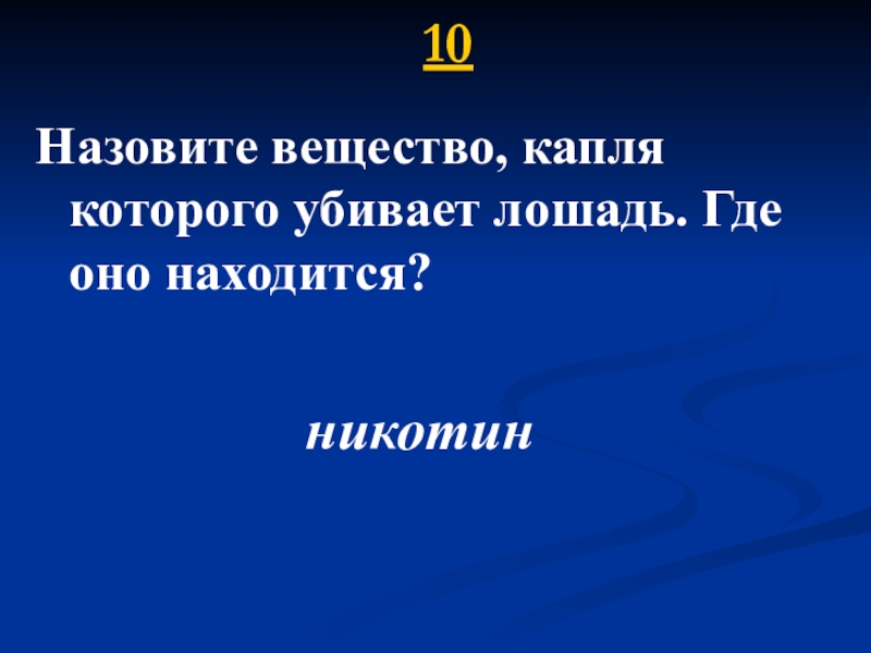 Назовите вещество, капля которого убивает лошадь. Где оно находится?