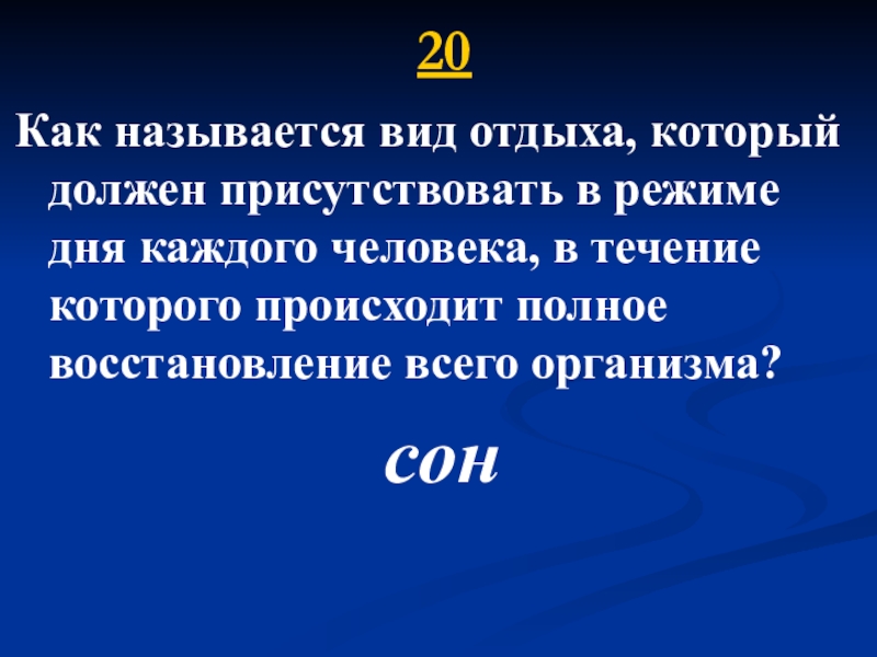 Как называется вид отдыха, который должен присутствовать в режиме дня
