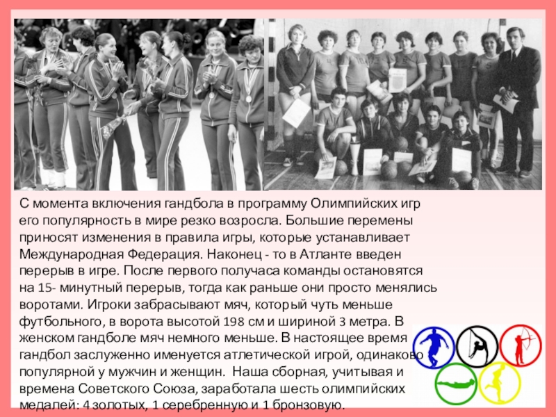 Слайд 6С момента включения гандбола в программу Олимпийских игр его популярность в