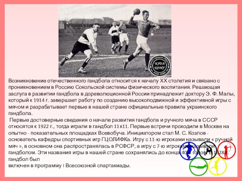 Слайд 4Возникновение отечественного гандбола относится к началу ХХ столетия и связано с