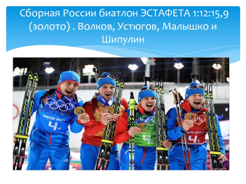 Сборная России биатлон ЭСТАФЕТА 1:12:15,9 (золото) . Волков, Устюгов, Малышко и Шипулин