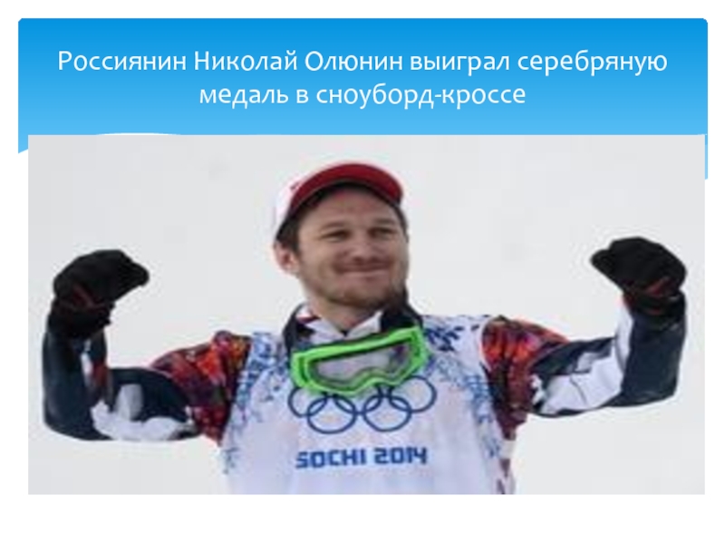 Слайд 13Россиянин Николай Олюнин выиграл серебряную медаль в сноуборд-кроссе