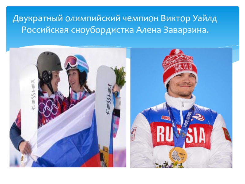 Слайд 12Двукратный олимпийский чемпион Виктор Уайлд Российская сноубордистка Алена Заварзина.