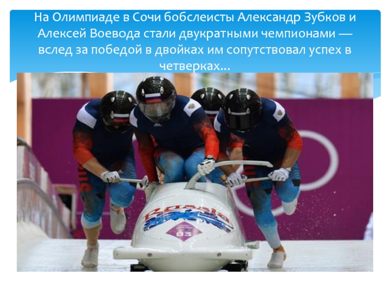 Слайд 5На Олимпиаде в Сочи бобслеисты Александр Зубков и Алексей Воевода стали