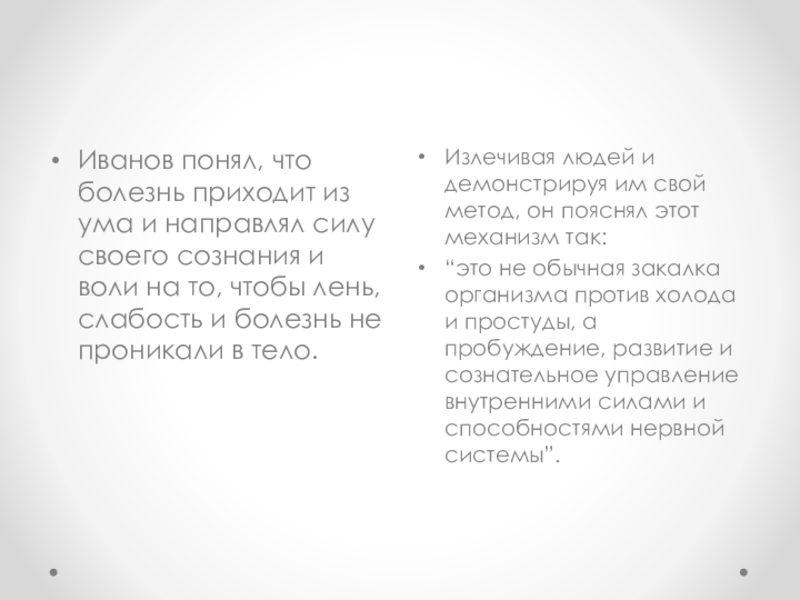 Слайд 19Иванов понял, что болезнь приходит из ума и направлял силу своего