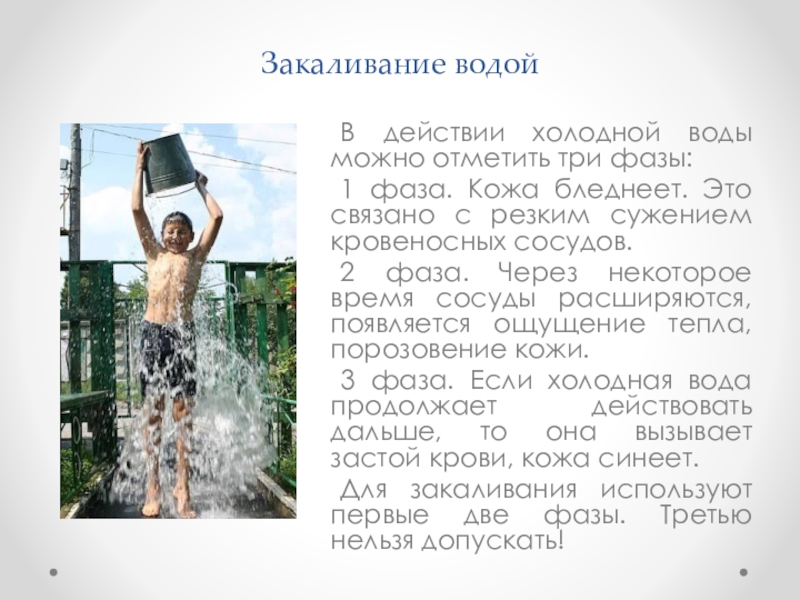 Для закаливания используют первые две фазы. Третью нельзя допускать!