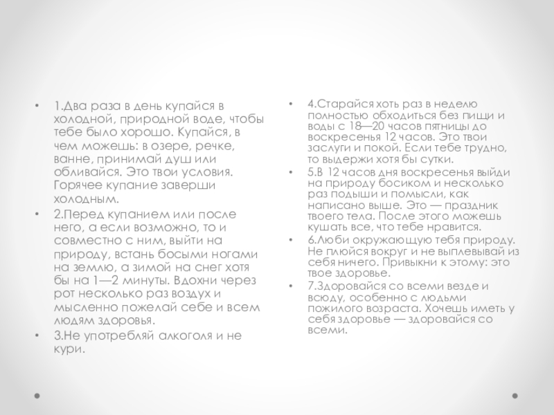 Слайд 201.Два раза в день купайся в холодной, природной воде, чтобы тебе