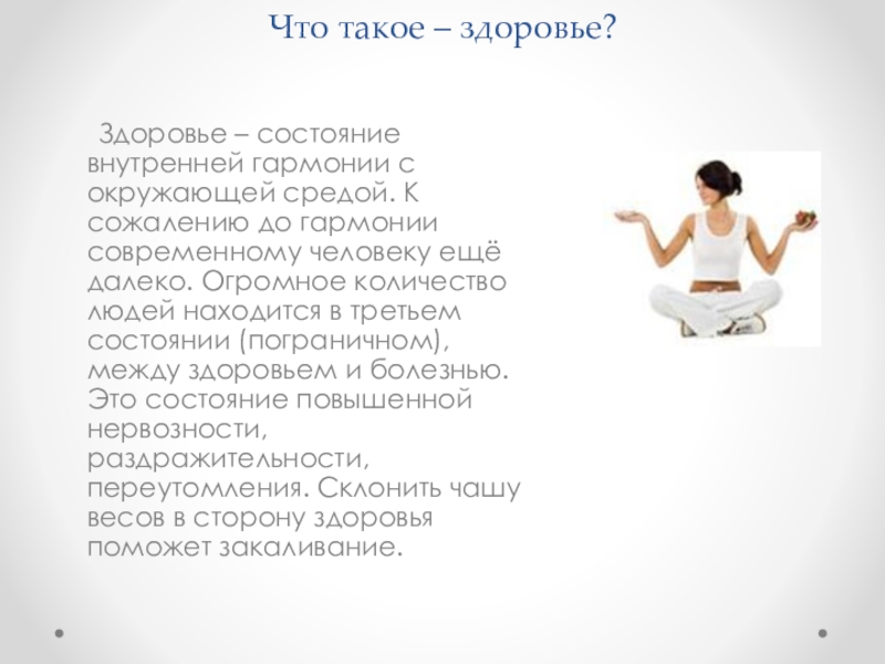 Здоровье – состояние внутренней гармонии с окружающей средой.