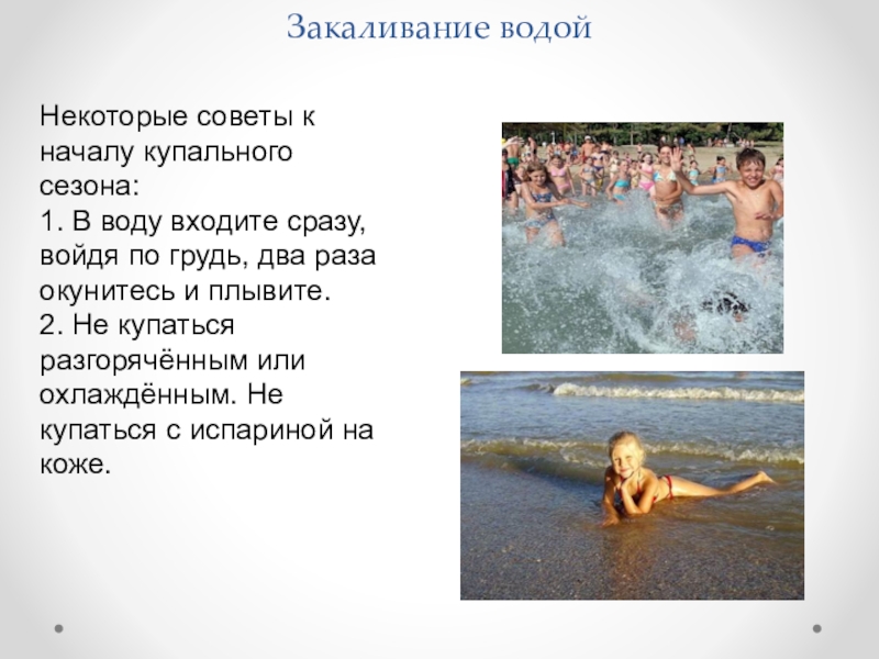 2. Не купаться разгорячённым или охлаждённым. Не купаться с испариной на коже.