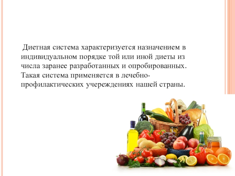 Слайд 31 Диетная система характеризуется назначением в индивидуальном порядке той или