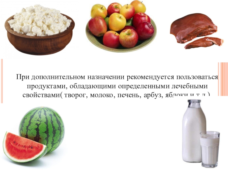 Слайд 34 При дополнительном назначении рекомендуется пользоваться продуктами, обладающими определенными лечебными