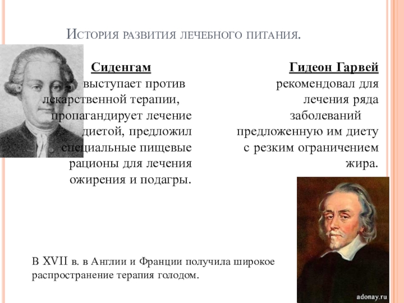 В XVII в. в Англии и Франции получила широкое распространение терапия голодом.