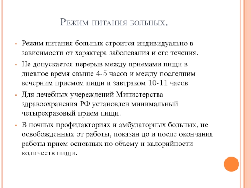 Для лечебных учереждений Министерства здравоохранения РФ установлен минимальный четырехразовый прием пищи.